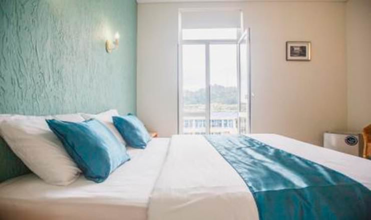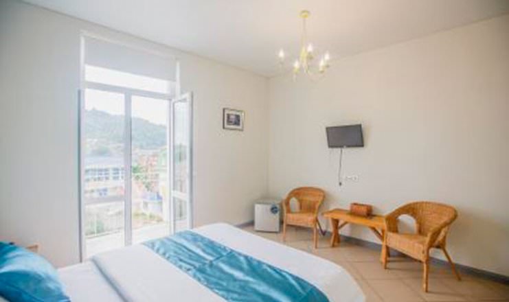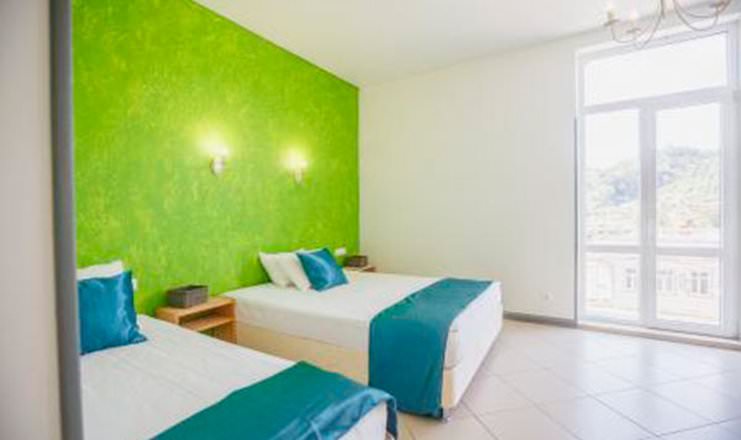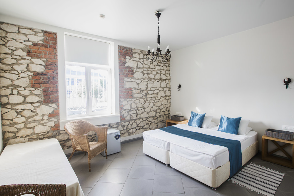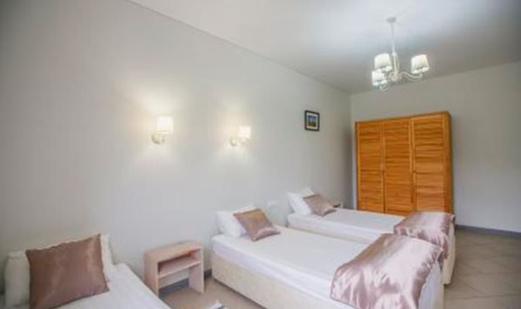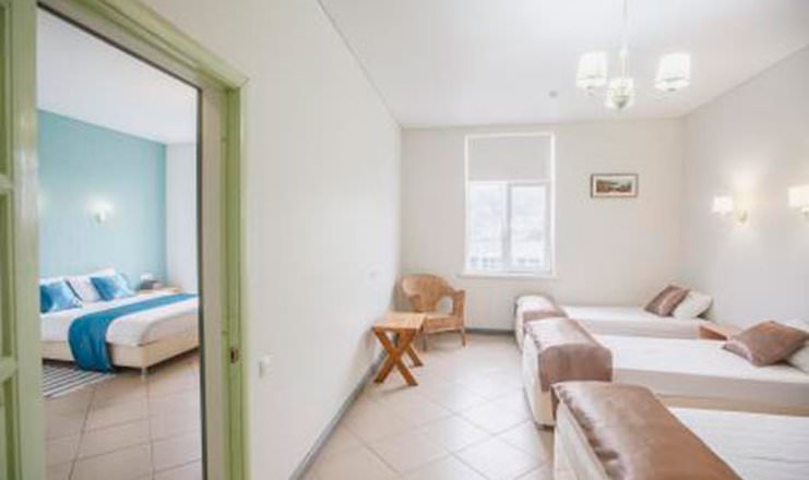 Общая площадь семейного номера составляет 40 м2, оборудован одной двухспальной и двумя односпальными кроватями